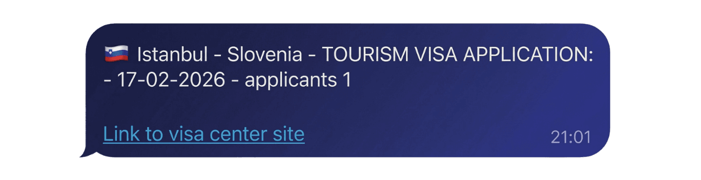 Visard updates visa centre websites every 3 seconds. If there are available time slots, it sends notifications at the same moment.